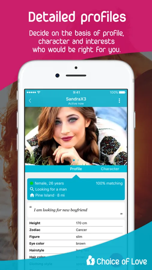 We are the alternative to fee-based services and have a strong focus on transparency: All our functions are available free of charge and without restriction for as long as you use the app. The Choice of Love dating portal is funded through advertising, which is unobtrusively displayed in our app.