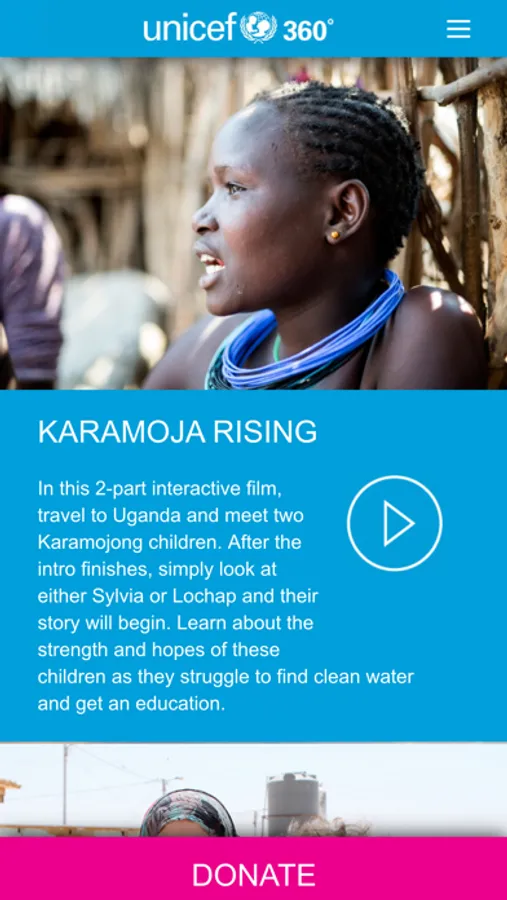 Introducing UNICEF 360° A new 360° video documentary series that – together with your smartphone - recreates the experience of actually being in the field. Using your UNICEF 360° custom cardboard viewer we’ll transport you on an expedition to let you see what we see, and help save the children we save. For more information or to get your own viewer go to unicef360.com
