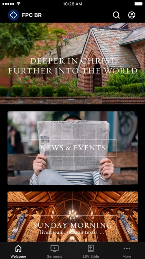 The First Presbyterian Church BR app was developed with the Subsplash App Platform.
