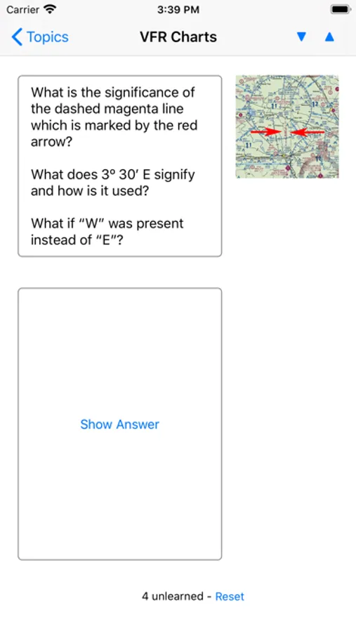 Questions are presented in flashcard style. Graphical images are provided when needed. When the pilot views the suggested answer, they can indicate if they answered satisfactorily or if they would like to review the question again. Learning all of the questions allows the pilot to be prepared and confident for the ground component of the FAA Flight Review.