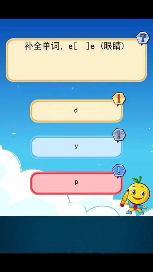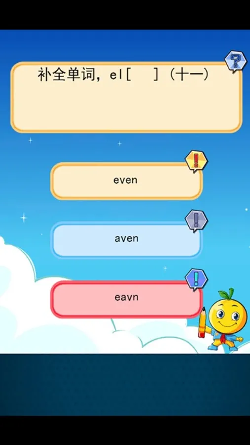 这个应用就是解决这个难题的,此应用把一些经典的小学刚开始学习英文的题目以游戏的方式,让孩子进行学习,以问答题的形式让孩子快乐轻松的学习英语。