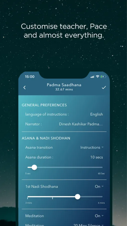 - Personalize your daily Sadhana by customizing teacher, pace and almost everything.