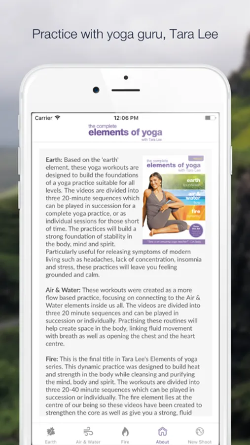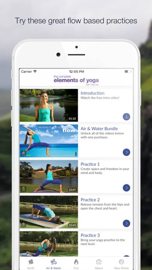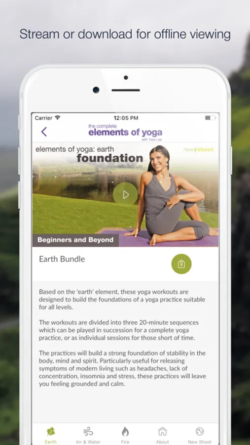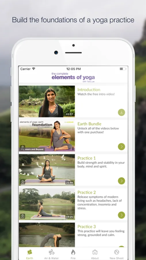 Earth: Based on the 'earth' element, these yoga workouts are designed to build the foundations of a yoga practice suitable for all levels. The videos are divided into three 20-minute sequences which can be played in succession for a complete yoga practice, or as individual sessions for those short of time. The practices will build a strong foundation of stability in the body, mind and spirit. Particularly useful for releasing symptoms of modern living such as headaches, lack of concentration, insomnia and stress, these practices will leave you feeling grounded and calm.