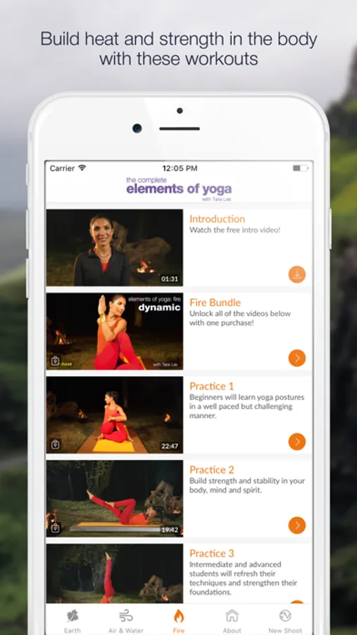 Fire: is the final title in Tara Lee's Elements of yoga series. This dynamic practice was designed to build heat and strength in the body while cleansing and purifying the mind, body and spirit. The workouts are divided into three 20-40 minute sequences which can be played in succession or individually. The fire element lies at the centre of our being so these videos have been created to strengthen the core as well as give you a strong, fluid practice that will eliminate toxins. Connecting to the fire element will help you burn up unwanted emotional issues and detoxify the body.