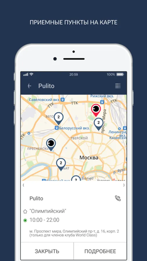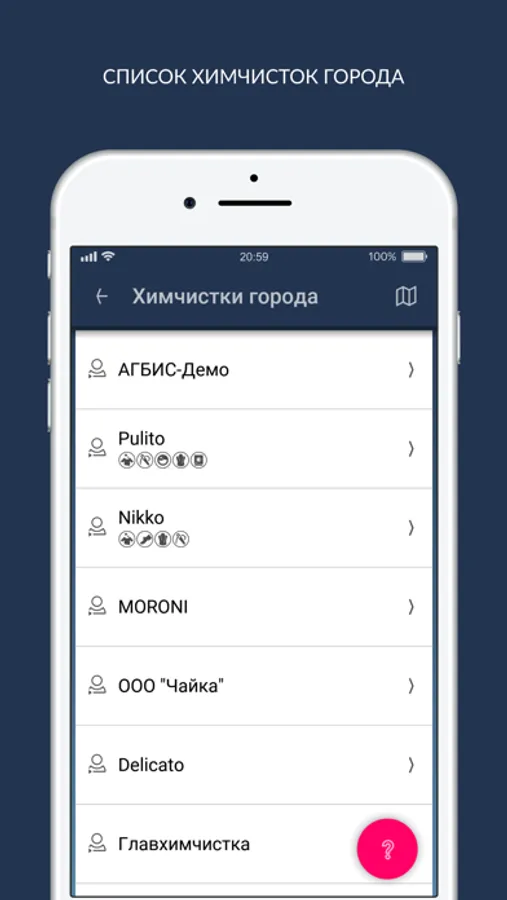 Приложение позволяет увидеть информацию о приемных пунктах химчисток городов России, Казахстана, Украины, Белоруссии и Латвии, подключенных к сервису "Химчистка Инфо": места расположения их приемных пунктов, время работы, телефоны, действующие акции и новости. Кроме того, с помощью приложения можно узнать: