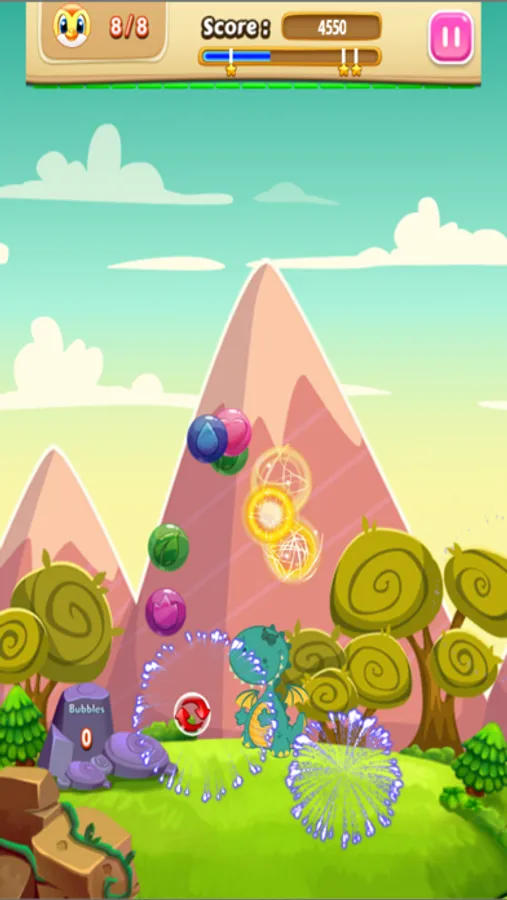 The little squirrel is the main character. Throw up to destroy the limited number of bubble bubbles on top of as much as possible. To liberate the squab locked in the bubbles on top. Your finger will become the land with magical squirrel squirrel and you can help by tapping the air bubbles on the screen.