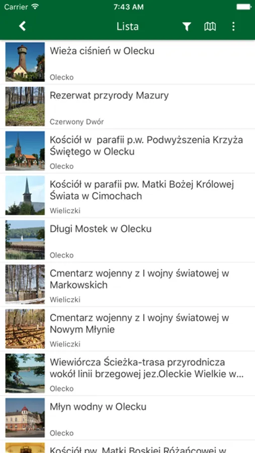 Aplikacja posiada wbudowaną bazę obiektów turystycznych i handlowo-usługowych, dzięki czemu możliwe jest korzystanie z niej bez konieczności łączenia się z internetem. Przewodnik turystyczny po powiecie Oleckim pozwoli każdemu turyście odkryć najbliższe atrakcje turystyczne, dowiedzieć się o organizowanych wydarzeniach i imprezach, poznać okoliczne jeziora, malownicze szlaki turystyczne, zabytki i ciekawe miejsca.