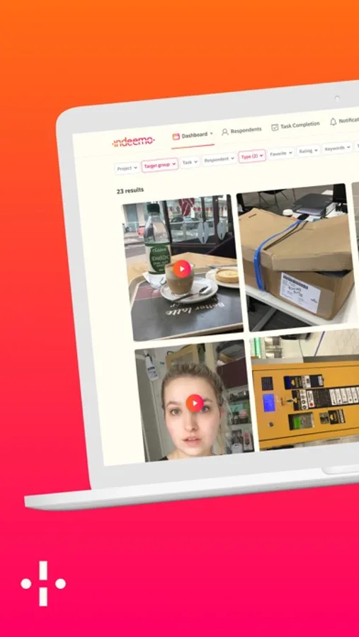 Tasks are assigned to respondents and respondents complete their tasks by uploading in-the-moment videos, photos and notes. Researchers analyse and moderate responses in real-time using the Indeemo Researcher Dashboard.
