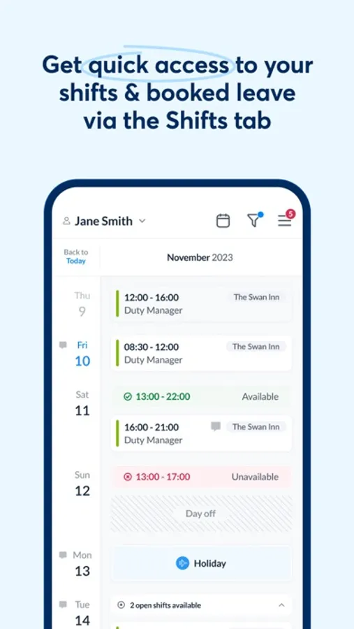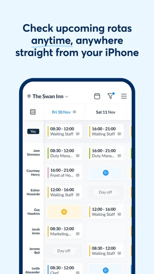 RotaCloud is the easy way to plan and share rotas, manage leave and attendance, and communicate with your team. It also gives your staff 24/7 access to their rota, lets them clock in and out of shifts, and even request annual leave — no more email chains, memos, or WhatsApp messages.