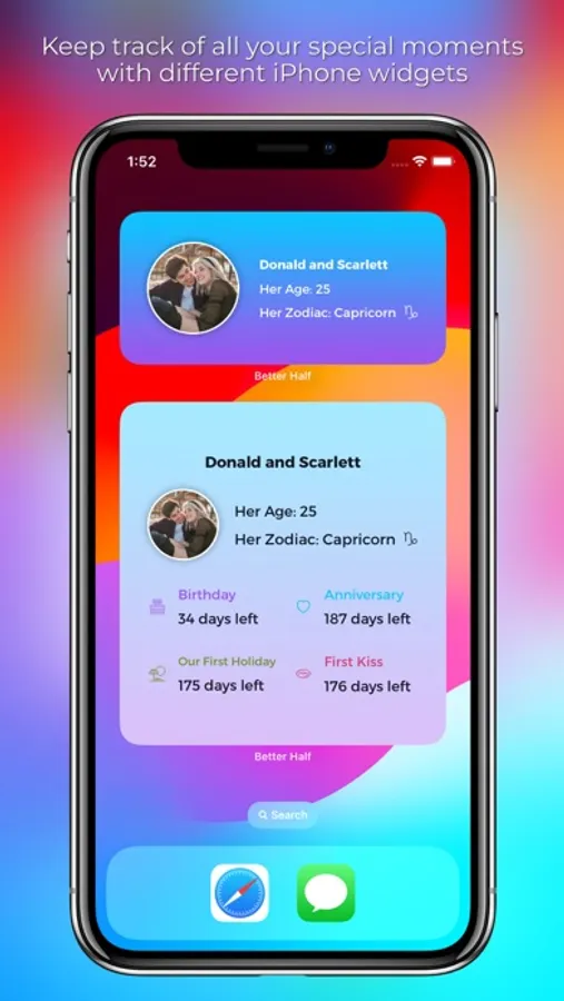 • iPhone Home Screen Widget/Today’s Extension Widget: Quickly check your love milestones right from your home screen!