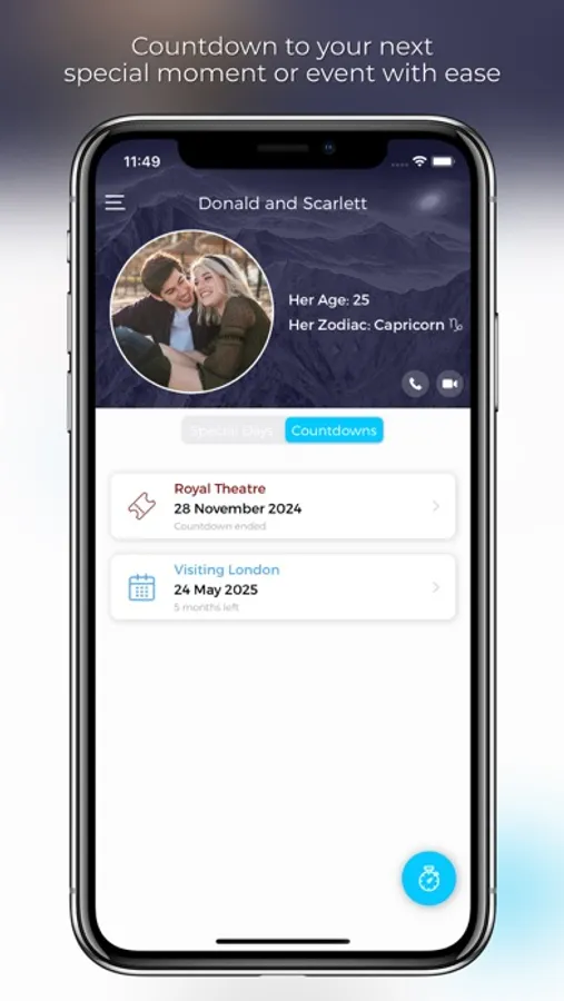 • Love Tracker: Celebrate your love journey by easily tracking every special moment, from your first kiss to anniversaries and beyond. Keep a record of all the meaningful milestones that make your relationship unique, ensuring no important date is ever forgotten.