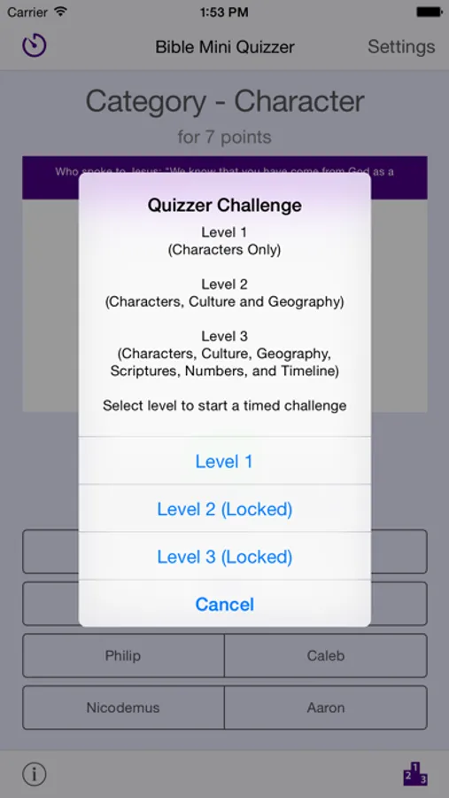 Added categories give you a mix of more Bible based subjects and more than 1400 questions. Choose your categories or unlock all of them, and have fun with the Quizzer Challenge.