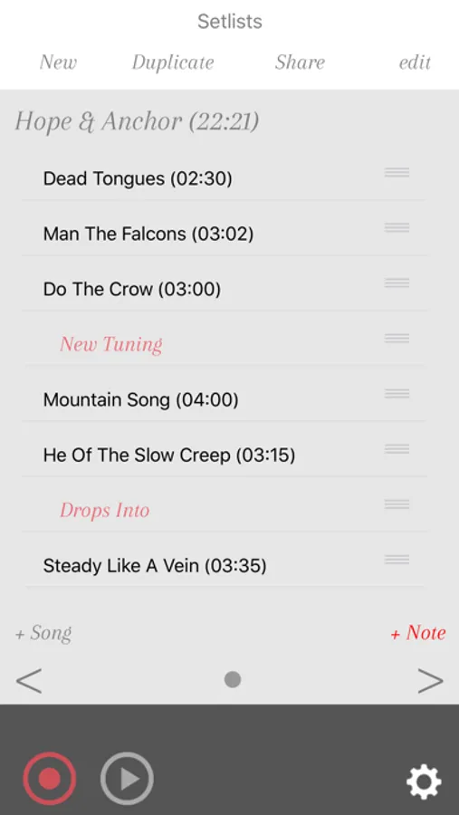 SetBoss also helps you to easily create Setlists by dragging and dropping your songs around to make the perfect running order, which you can then share or print directly from the App (hey, remember, put your best song third).