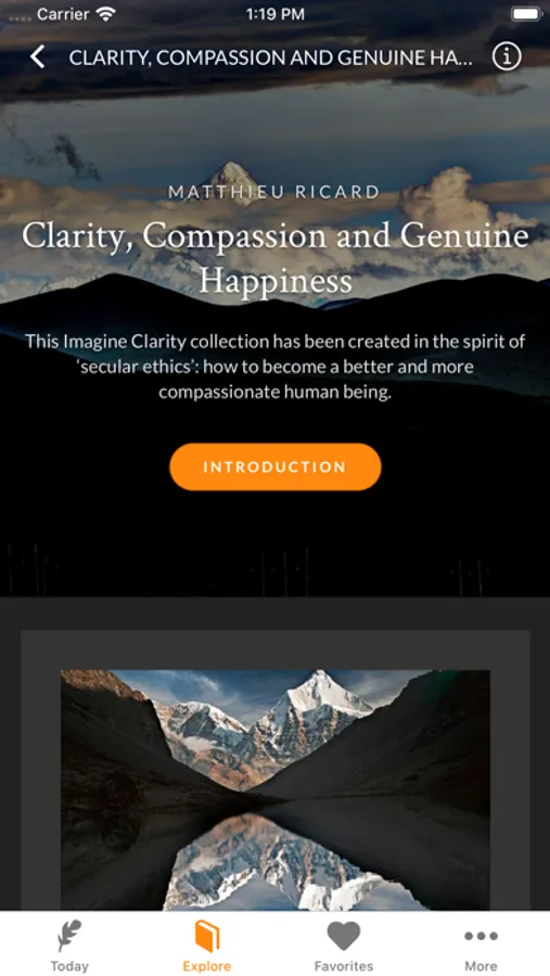 “Imagine Clarity is an app about meditation, but meditation is not just emptying our mind and relaxing. It is training our minds. If we learn to cultivate as skills our inner qualities such as benevolence, compassion, Clarity, inner peace, inner strength, not only will we flourish in life, but through that we can also benefit others, care for more social justice and future generations.” —Matthieu Ricard