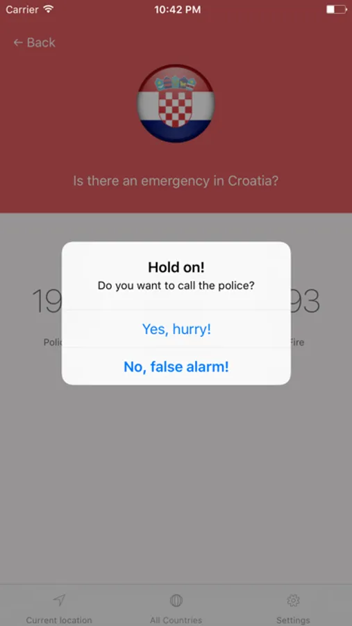 The main function of the app is the localization process that will check in which country you currently are and immediately shows the specific emergency phone numbers.
