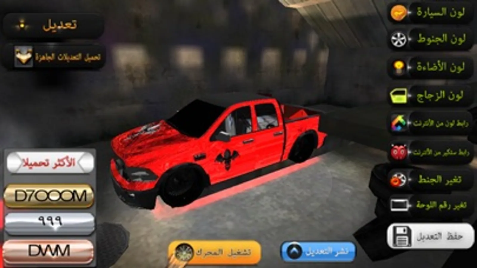 ٦- امكانية تحميل اشكال من الانترنت وتغير لون السيارة من الانترنت + اضافة ستكير