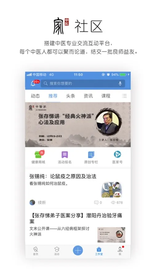 中国唯一的手机端中医专业社区,扩展行业视角,增强学习效率,收获中医人脉,提供五大板块涵盖:资讯,医案,论道,课程,生活。