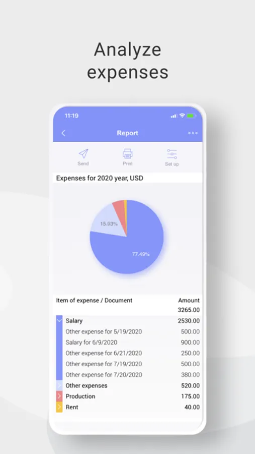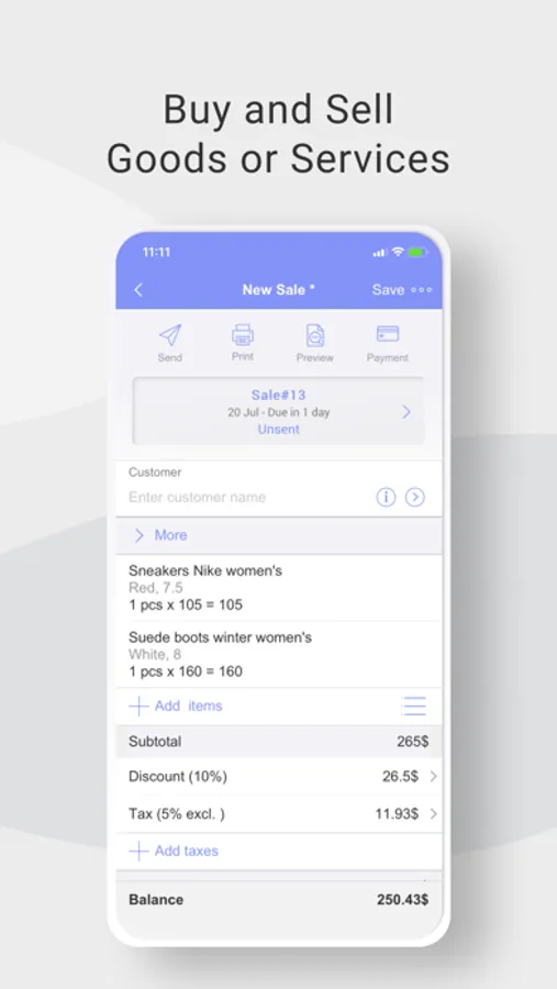 - Make out an invoice directly from the app, and send it by email or share with any other messaging app.