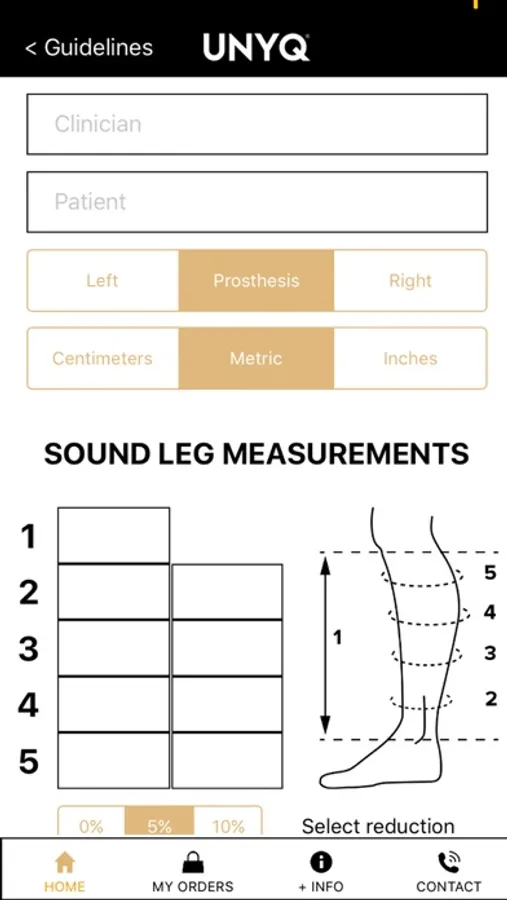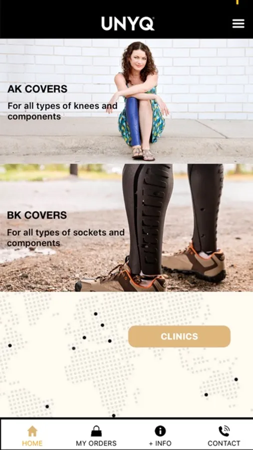 - Place orders for UNYQ prosthetic products and manage existing orders, including tracking order statuses. All the information is sent to UNYQ automatically when you are done; the photos will be uploaded in the background.