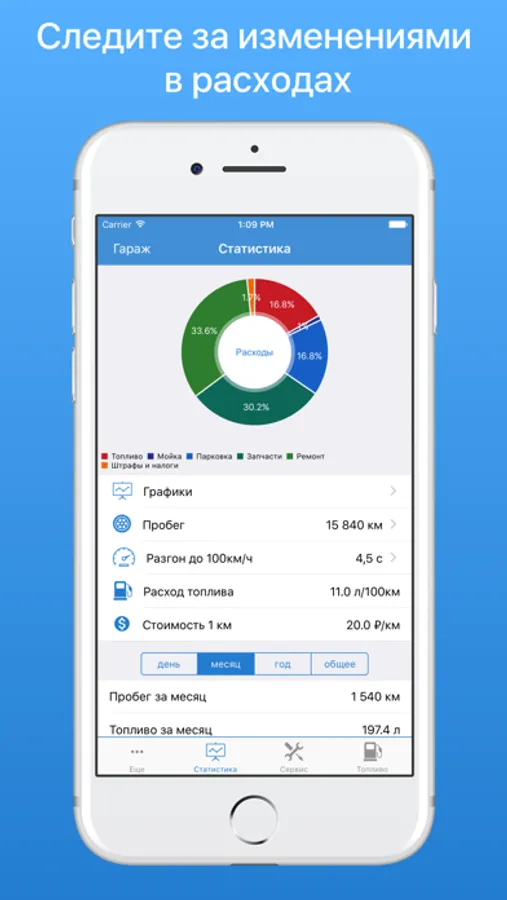 Введите записи о ремонте и об прочем обслуживании, разделяйте записи по категориям и приложение рассчитает и покажет на графиках на какую категорию Вы тратите больше всего. Также Вы можете добавлять фотографии и заметки к записям об обслуживании.