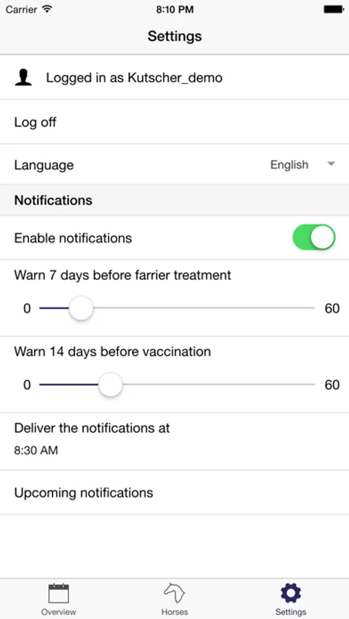 To use EquineM after the two week free trial you or your stable needs a paid subscription. The monthly auto-renewing subscription can be activated via in-app-purchase. Payment will then be charged to the iTuens Account after confirming the purchase. Account will be charged for renewel within 24 hours prior to the end of the current period. Subscriptions may be managed (and auto-renewal turned off) by going to the Account Settings after purchase. Our terms and conditions: https://www.equinem.com/privacy/#terms