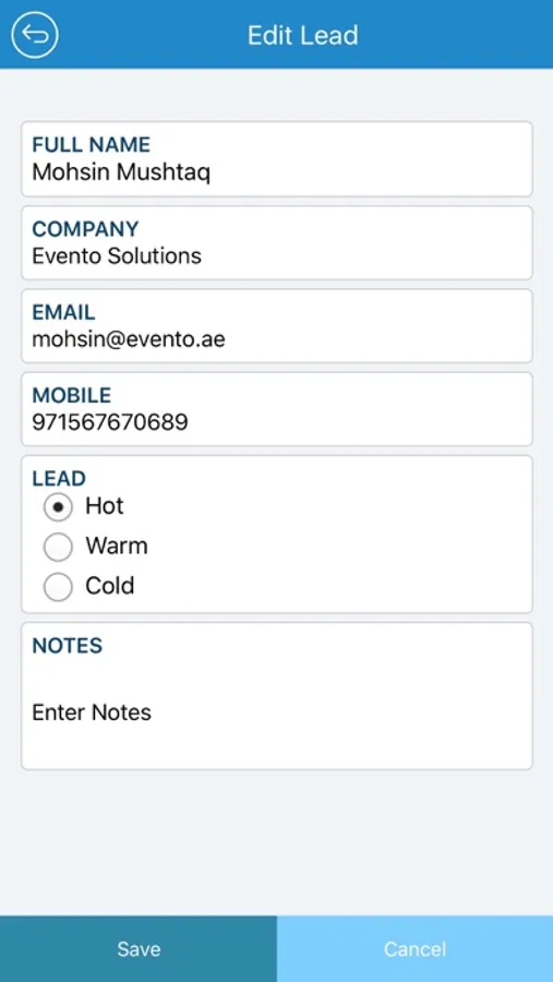 - On capturing a lead, the user can prioritise the lead by assigning a status (Hot, Warm or Cold) according to your own preference