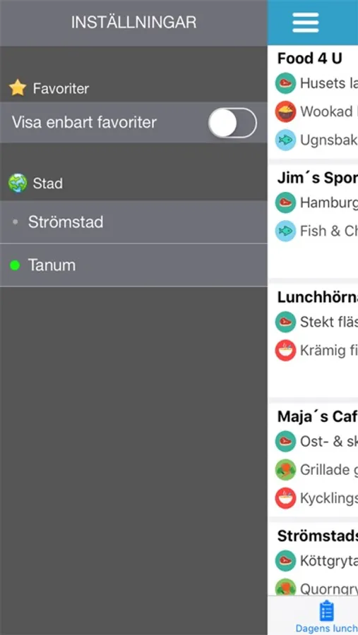 Med Daily Lunch appen kan du snabbt, smidigt och enkelt se vad de olika restaurangerna i Strömstad serverar till lunch.