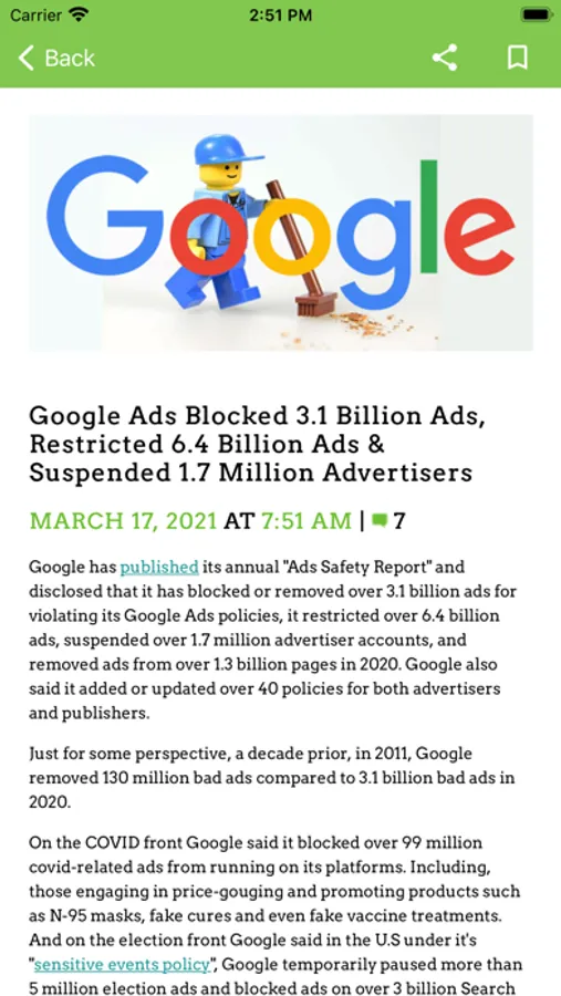 * Bookmark stories you want to save or share your favorite stories on social