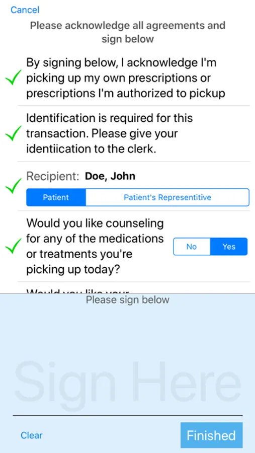Rx30 Signature is the signature capture solution for the Rx30 Pharmacy System. Track the date and time prescriptions were picked up and collect the required signatures to ensure compliance with federal, state government and insurance company regulations. Rx30 Signature will work for any prescriptions marked for "pickup" in the Rx30 Pharmacy System.