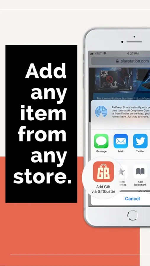 Now when you see an item you like, you can add it to your GiftBuster list without ever leaving the Safari browser by tapping the "Share" icon and then clicking "Add Gift via GiftBuster"!