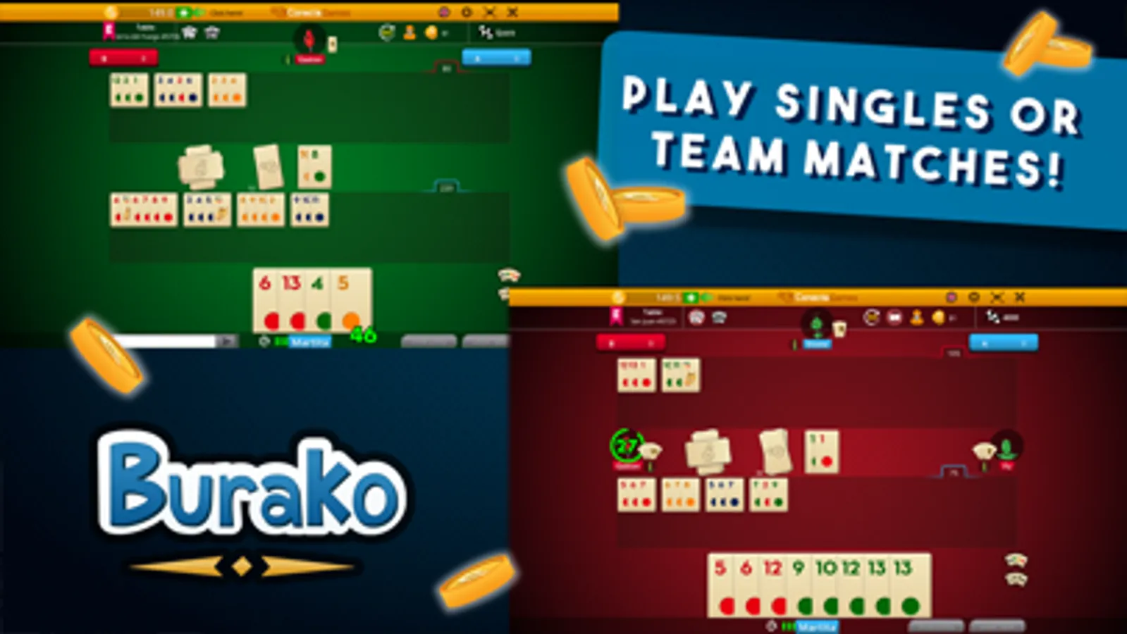 Burako is a game popular in Argentina where you play with a set of numbered tiles. It is a multiplayer game for 2 or 4 players (two pairs).