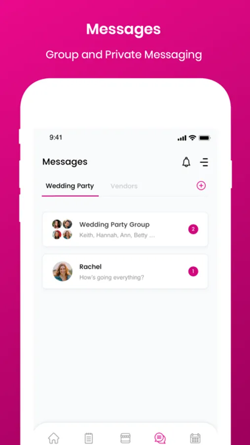 From discussing vendors and important details with the Groom, to discussing dress fittings, bridal showers and bachelorette parties with the bridesmaids, planning has never been easier or more organized!