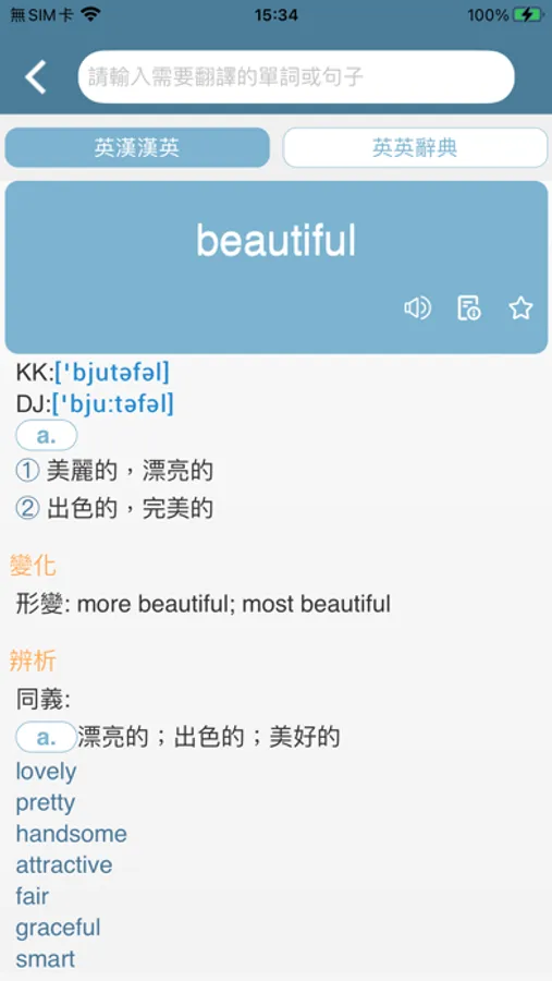 2. 豐富辭典內容隨心查:內建豐富英漢漢英辭典,可以查詢辭典內容&辭彙發音。