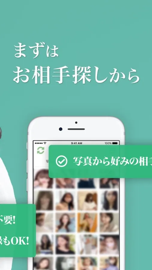 メールアドレス、電話番号不要で登録、すぐ使えてすぐにマッチング