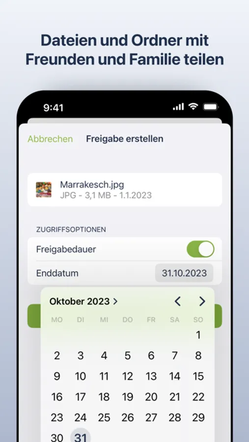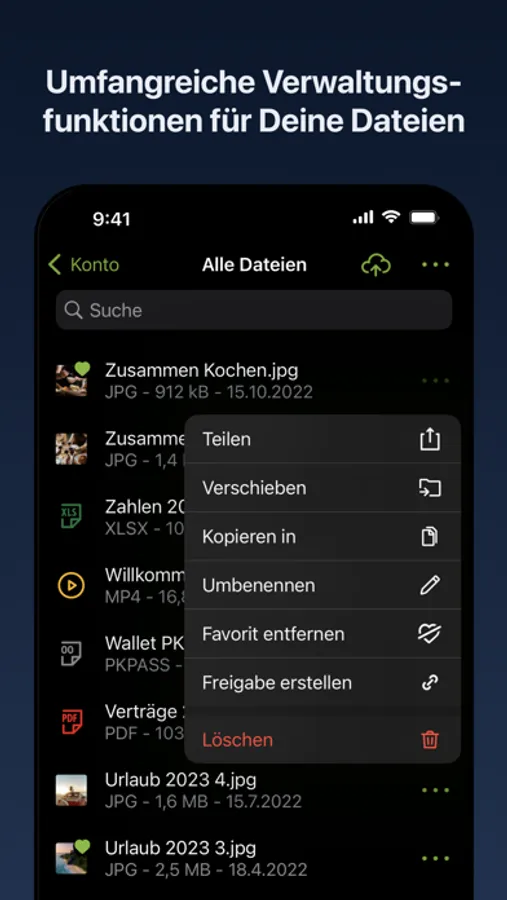 • Einfaches Teilen von Dateien mit Freunden und Bekannten