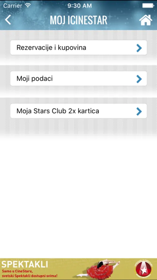 Ukoliko želite da kupite ili rezervišete ulaznice, to možete da uradite sigurno i brzo preko aplikacije Stars Club 2X Bonus karticom. Kada pokrenete aplikaciju, izabrana sedišta postaju vaša u samo dva klika! Barkod kupljene ulaznice, kao i rezervaciju, možete da pronađete u rubrici Moj iCineStar.
