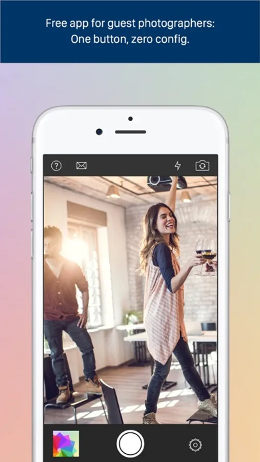 Your guests are taking pictures already - why not give them a central place to share them with the crowd? Tell your guests to download PhotoWall+ Cam from the iOS AppStore for free and let them post their photos on the big screen so every attendee can enjoy them. Plus, all photos posted on your photo wall will be stored in your iCloud account, making it easy to collect and share after the confetti has settled.