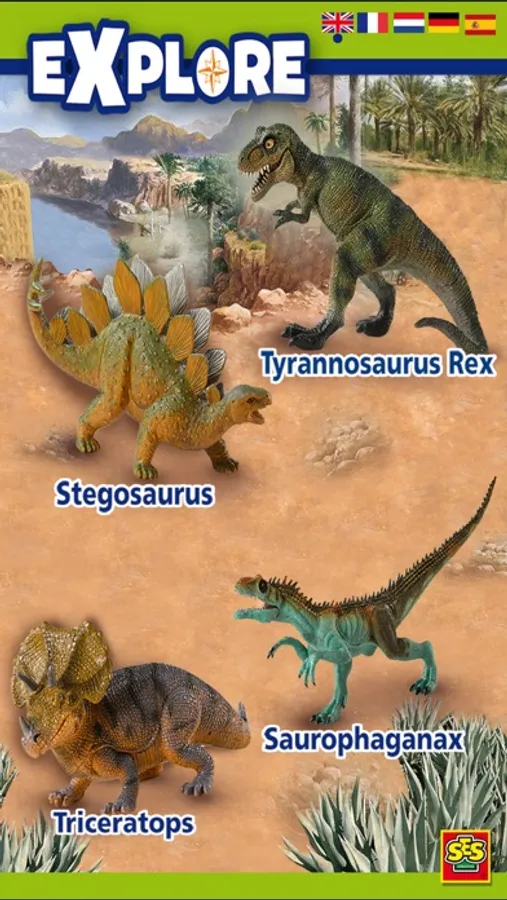 Under the name Explore , SES has developed four plastic dinosaurs. The dinos are very detailed and lifelike. Kids can play with them for hours and at the same time learn more about history and the world around them. Collect all dinos!