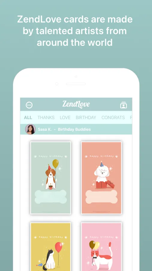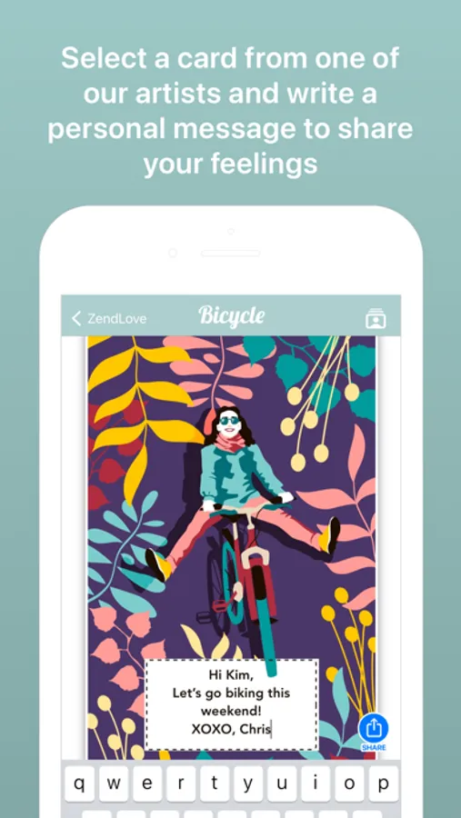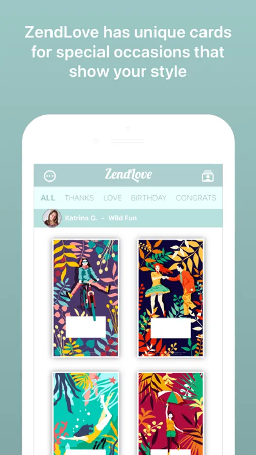 ZendLove lets you share love with artistic digital greeting cards made by talented artists from around the world. ZendLove has unique cards that show your style for any special occasion. Select a beautiful card, then write a message to make it personally yours and share it with loved ones. Share your personalized ZendLove cards instantly via Apple iMessage, WhatsApp, Texting, Email, Facebook Messenger, and more. Using ZendLove cards is good for the environment, with minimal carbon footprint compared with traditional paper greeting cards - no waste, no stamps, and no trips to the mailbox.