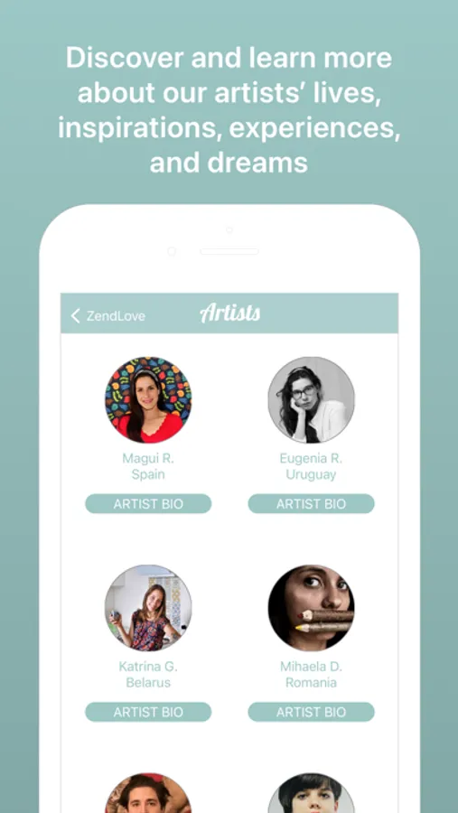 We have commissioned artists from around the world to craft beautiful greeting cards made with watercolor, paper, ink, color pencil, acrylics, mixed media, digital, and more. Our artist community is important to us, and you can get to know the artists by exploring their cards and profiles in the ZendLove app.