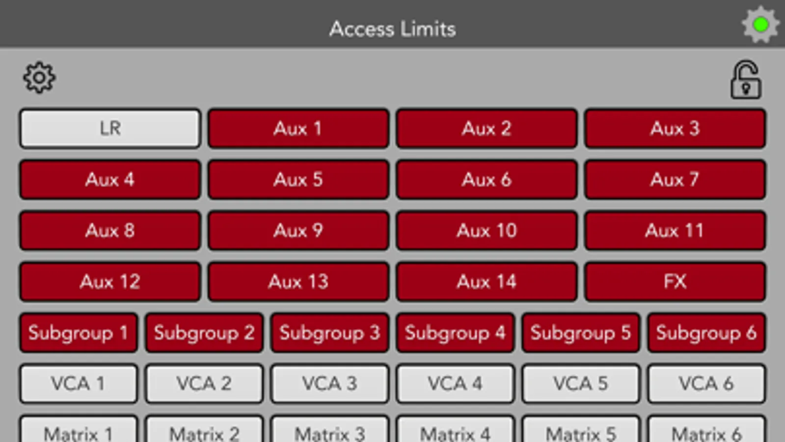 • Access Limiting allows flexible customization of user interface and prevents unwanted adjustments from other engineers/musicians