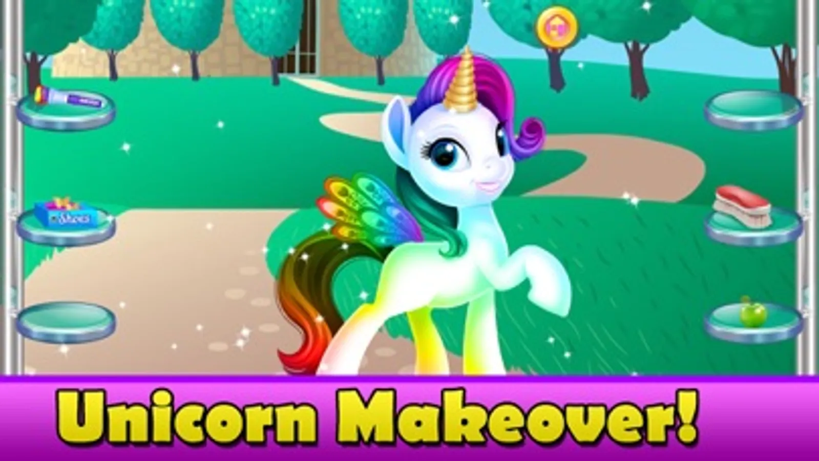 Level 4: Magic rainbow unicorn pony makeover! Feed apples to the pony, add wings and more!