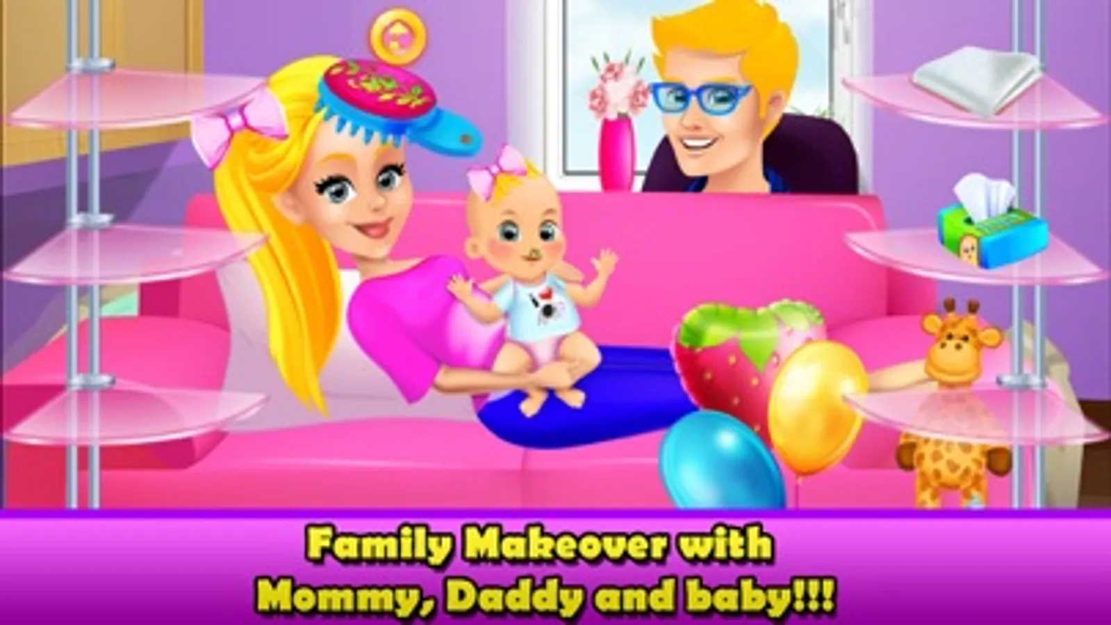Help mommy & daddy on a fun family adventure! Feed mommy, do make-up, baby care and much more!