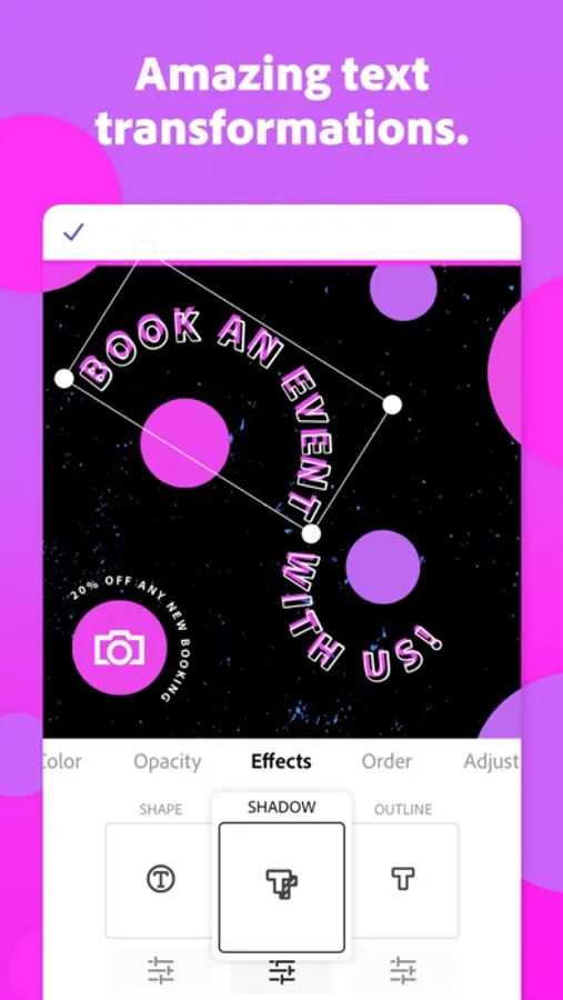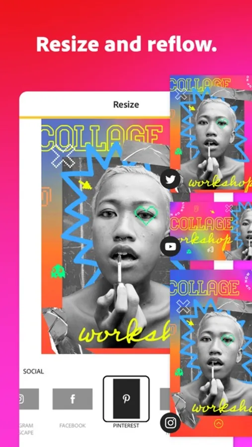 • Effortlessly make eye-catching content like social media Stories, graphics, and ads