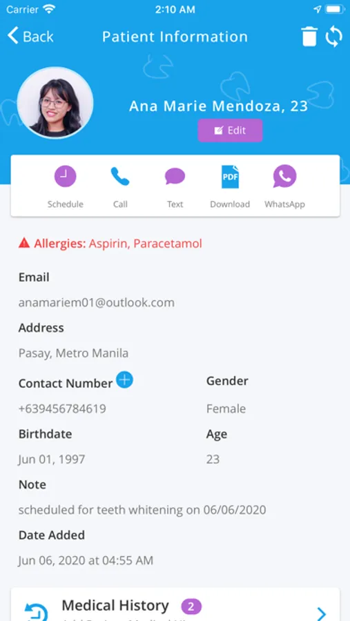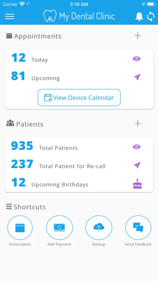 My Dental Clinic helps dentists manage their patients and clinic. Dentists can keep a database of their patient’s record. These include personal information, dental charts, dental notes, and appointments. They can also attach dental images and keep a record of patient payments. A dentist can also call or send SMS directly from the contact number of the patient. Appointments can be saved directly to your IOS calendar.