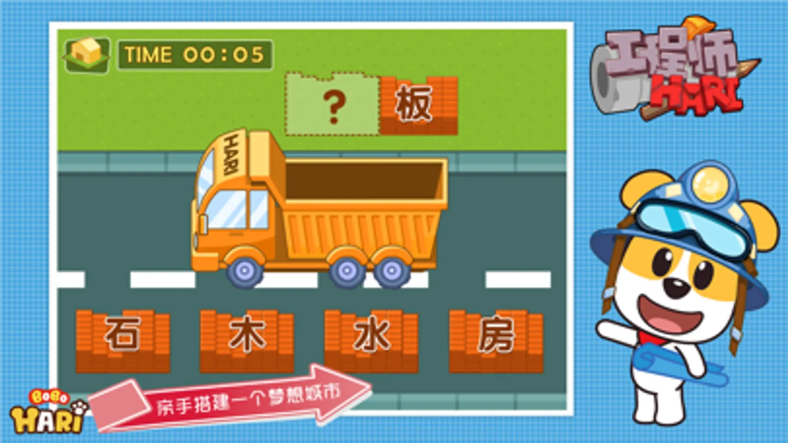 快!哈利已经在等你了!大卡车开起来……砖头砌起来……在空旷的土地上随心所欲地建造高楼大厦,铁路河流……和哈利一起亲手搭建一个梦想城市吧!这是职业角色扮演与儿童智趣游戏的完美结合!