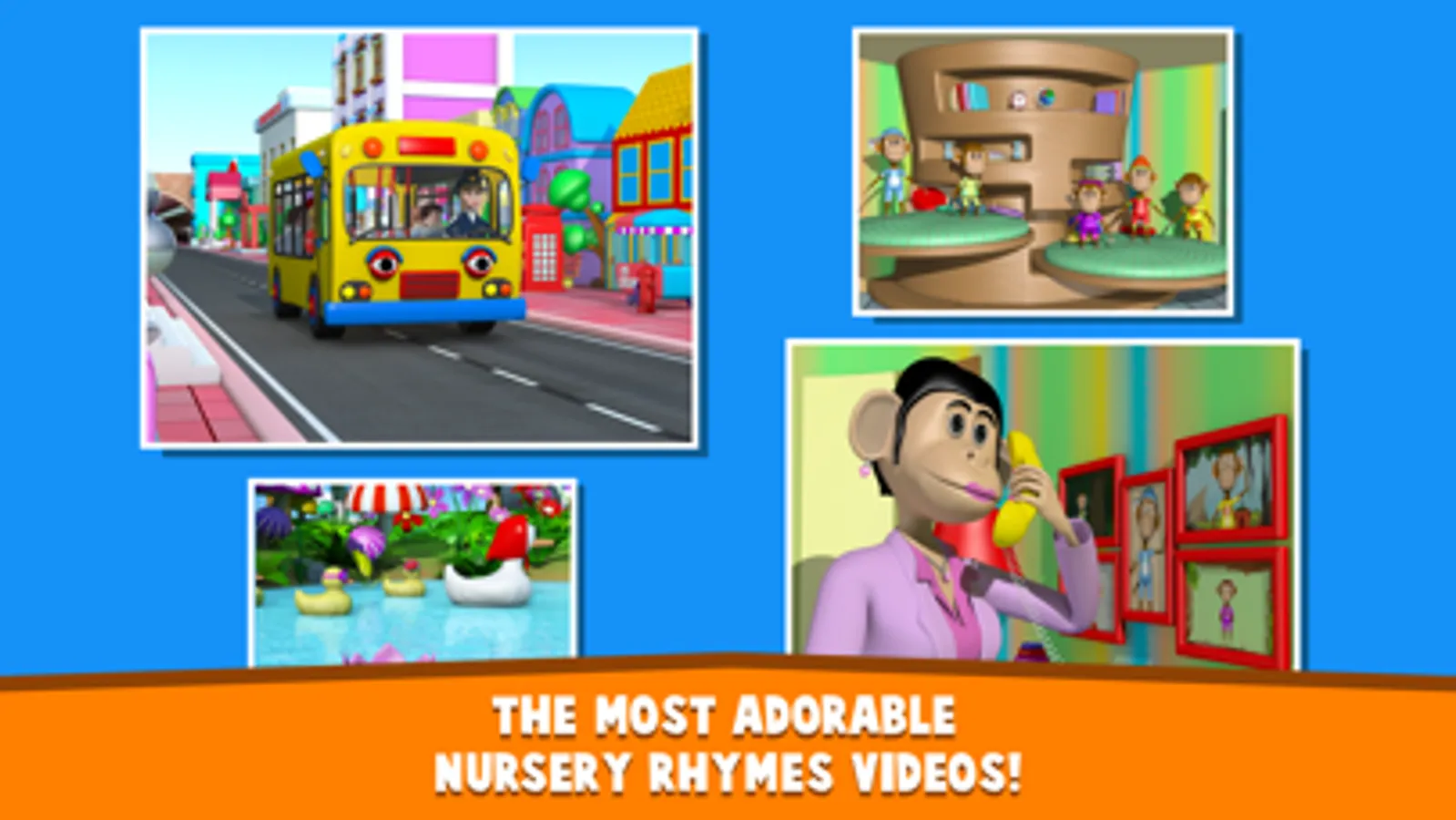 Nursery Rhymes that kids love - Wheels on the Bus, Itsy Bitsy Spider, Five Little Monkeys and more in this colorful and amazing video app for kids. Nursery Rhymes Music Box includes songs kids love to sing !