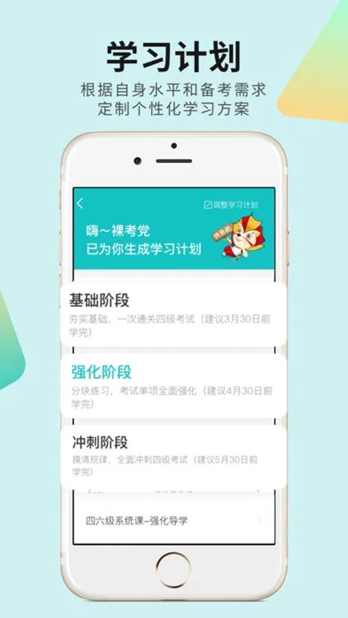【学习计划】根据学生备考需求及自身水平,定制个性化学习方案,让你告别盲目学习。