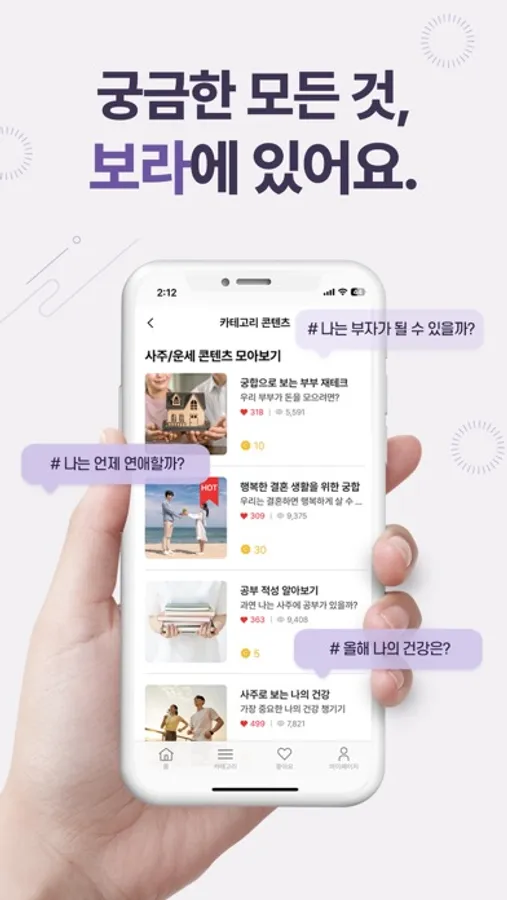 가볍게 드는 작고 사소한 궁금증부터, 다른 사람에게 말하기 어려운 고민까지. 보라에서 모두 보여드릴게요.