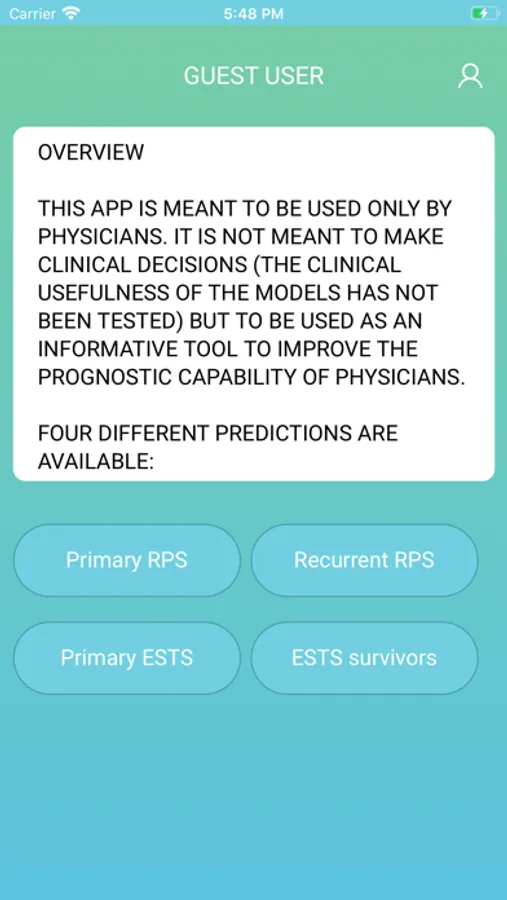This app is meant to be used only by physicians and it is not meant to make clinical decisions (the clinical usefulness of the two models has not been tested) but to be used as an informative tool to improve the predictive capability of a physician.
